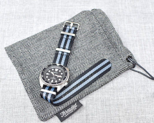 £19.00Sale price £15.00Ribbed Military Nylon Watch Strap - Black & Gray
